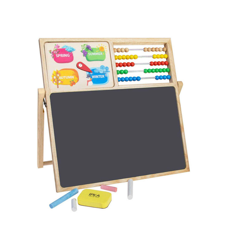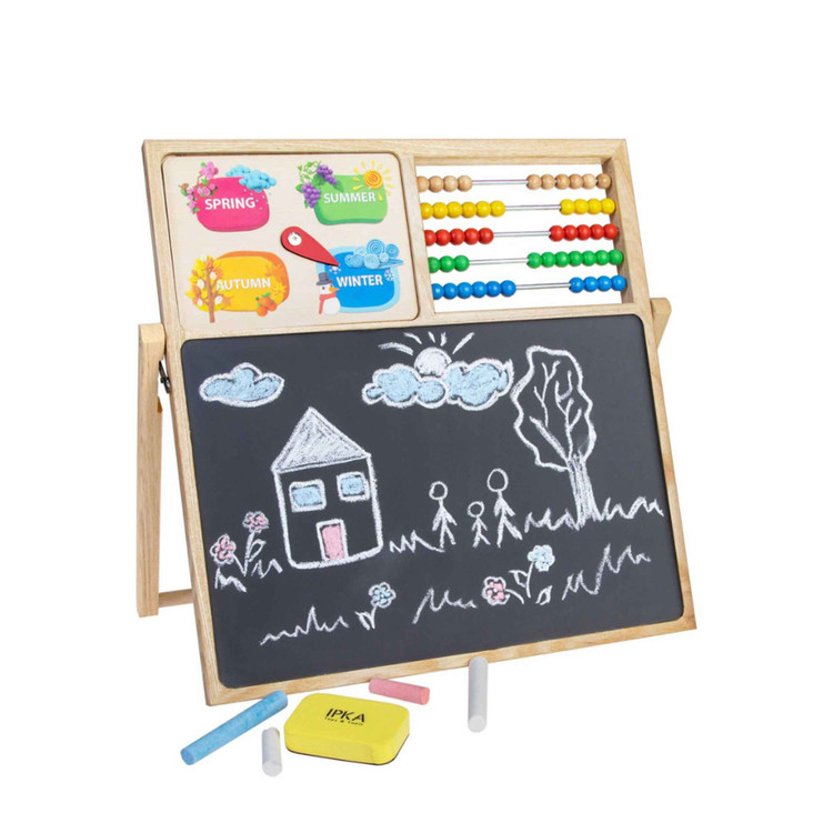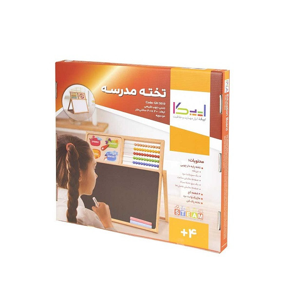 تخته مدرسه ایپکا، یک اسباب بازی کمک آموزشی است که ساعتها سرگرمی و آموزش را برای کودکان به ارمغان میآورد. این تخته مدرسه دو سویه است؛ یک سو تخته سیاه و یک سو وایت برد که استفاده از آن به کودک در پرورش مهارت نوشتاری و نقاشی کمک میکند. علاوه بر تختهها چرتکه، ساعت و صفحه آموزش فصلها هم به زیبایی روی تخته مدرسه طراحی شده است تا بتواند در تقویت مهارت شمارش، یادگیری ساعت و آشنایی با فصول سال نقش به سزایی ایفا کند.