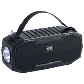 اسپیکرهای OUTDOOR و پرتابل که به شدت مناسب برای کمپینگ، سفر و پیاده روی هستند باید دارای بدنه ای مقاوم در برابر آسیب،ضربه و گرد و غبار باشند. همچنین باید طوری تعبیه شده باشند که وزن مناسب و حمل آسانی داشته باشند تا به راحتی هرجا که بخواهیم آنهارا همراه خود حمل کنیم. اسپیکر مدل TS 23006 از جمله اسپیکرهای OUTDOOR برند تسکو به شمار میرود که شما میتوانید آن را در موقعیت های مختلف همراه خود داشته باشید و از گوش دادن به موسیقی لذت ببرید. این اسپیکر پرتابل در ابعاد 90x67x200 میلی متر و وزن 0.475 کیلوگرم در رنگ مشکی طراحی و تولید شده، همچنین از یک بند برای حمل و جابجایی راحت این اسپیکر استفاده شده است. شما میتوانید از طریق بلوتوث ورژن 5_TF CARD_U DISK_AUX به دستگاه متصل شوید و به راحتی اقدام به پخش موسقی کنید و یا از گوش سپردن به رادیو لذت ببرید زیرا این دستگاه RADIO FM را نیز پشتیبانی میکند، از طرفی به دلیل میکروفون داخلی تعبیه شده در محصول قادر هستید به کمک این اسپیکر کاربردی تماس های ورودی خود را پاسخ دهید. اسپیکر پرتابل تسکو مدل TS 23006 مجهز به فناوری TWS نیز میباشد که از جمله مزیت های این اسپیکر به شمار میرود. این محصول بهره مند از یک باطری 1200 میلی آمپری است که در مدت زمان 2 الی 3 ساعت بطور کامل شارژ می شود، دارای وضوح صدای 80DB و توان واقعی 5 وات میباشد. از اقلام همراه اسپیکر مدل TS 23006 هم یک کابل دیتای USB میباشد. شرکت تسکو به تازگی محصولی قابل حمل و مقاوم را به بازار عرضه کرده که در ادامه آن را معرفی خواهیم کرد.