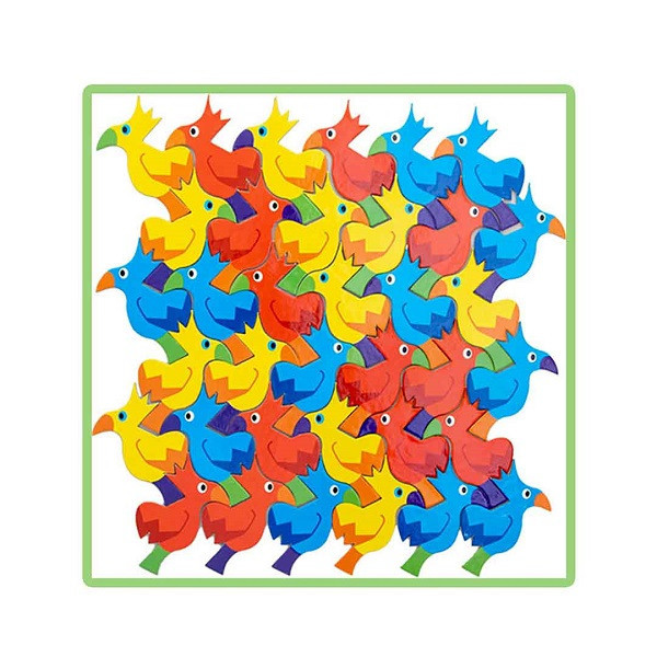 تعدادی طوطی رنگی مقوایی در بسته موجود هستند که به اشکال مختلف میتوانند در کنار هم قرار بگیرند. میتوان گفت مانند پازلی که خود بچه از ابتدا و با طراحی ذهنی خودش باید اقدام به چیدن آن نماید