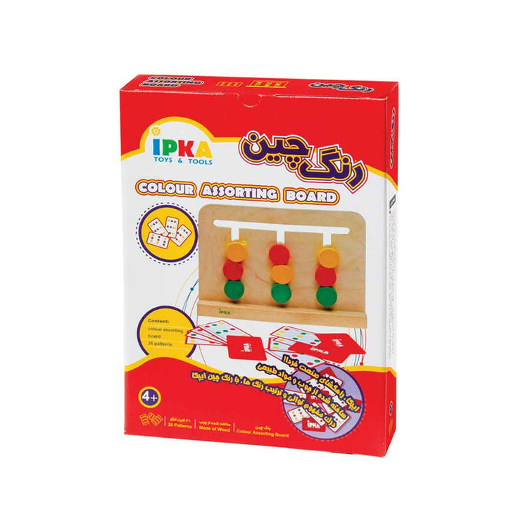 گروه کارخانجات شرکت ایران پتک ، معتبر ترین و بزرگترین تولید کننده ابزارآلات در ایران است که تمام محصولاتش منطبق با استانداردهای معتبر ملی و بین المللی تولید می شود . در حال حاضر این شرکت بیش از 1100 سایز و گونه ابزارآلات صنعتی ، خانگی و آموزشی ( با برند ایپکا ) تولید می کند . رنگ چین ایپکا یک بازی ساده اما در حین حال سخت که از یک صفحه چوبی شامل 9 مهره دایره ای شکل رنگی تشکیل شده است. این بازی شامل 26 عدد کارت الگو است که با جابجایی مهره های رنگی باید به شکل دقیق الگو برسید. در برخی موارد مهره های رنگی با استفاده از فضای بالای صفحه چوبی ، آنقدر باید جابجا شوند تا در جایگاه درست قرار بگیرند. در بازی رنگ چین ایپکا رنگ ها بایستی بر اساس الگوی روی کارت مرتب شود. این کار چندان هم که به نظر می رسد، ساده نیست. بعضی از مهره های رنگی باید با استفاده از فضای بالای صفحه ی چوبی، آنقدر جابه جا شوند تا بتوانند در جایگاه درست خود قرار گیرند. این بازی نه تنها باعث شناخت بهتر رنگ ها می شود، بلکه هماهنگی بین چشم و دست کودک را نیز تقویت می نماید.